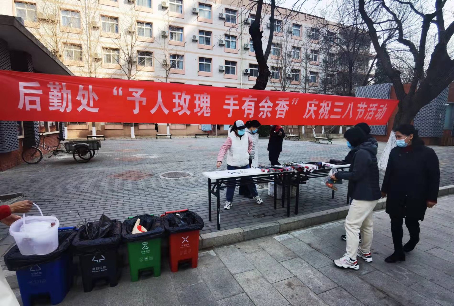 阳春三月,万物复苏。2022年3月8日上午,正值雷锋纪念日与三八妇女节到来之际,为弘扬雷锋精神,传播社会正能量,展现新时代女教职工保护环境的意识。后勤处组织开展“予人玫瑰 手留余香”学雷锋、爱校园、促环保三八妇女节活动。