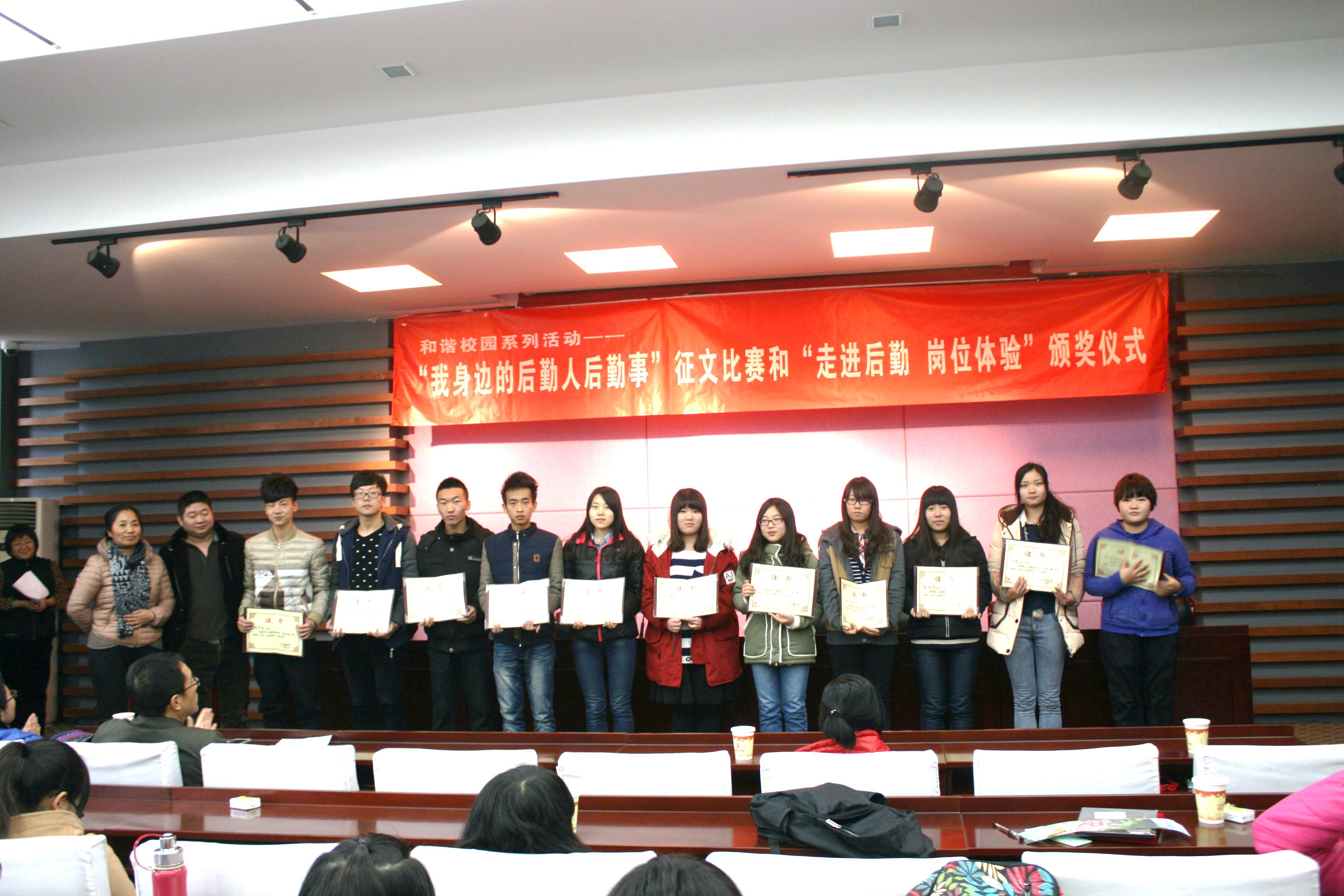 此次活动共征集各类文章46篇,经专业评审后,后勤处副处长韩玉斌宣读了获奖通报:肖曙晗、许诚、胡景怡三位同学荣获了一等奖,霍佳霈等六名同学获得了二等奖,聂慧超等十名同学获得了三等奖,麻珍宇等同学获得了优秀奖。