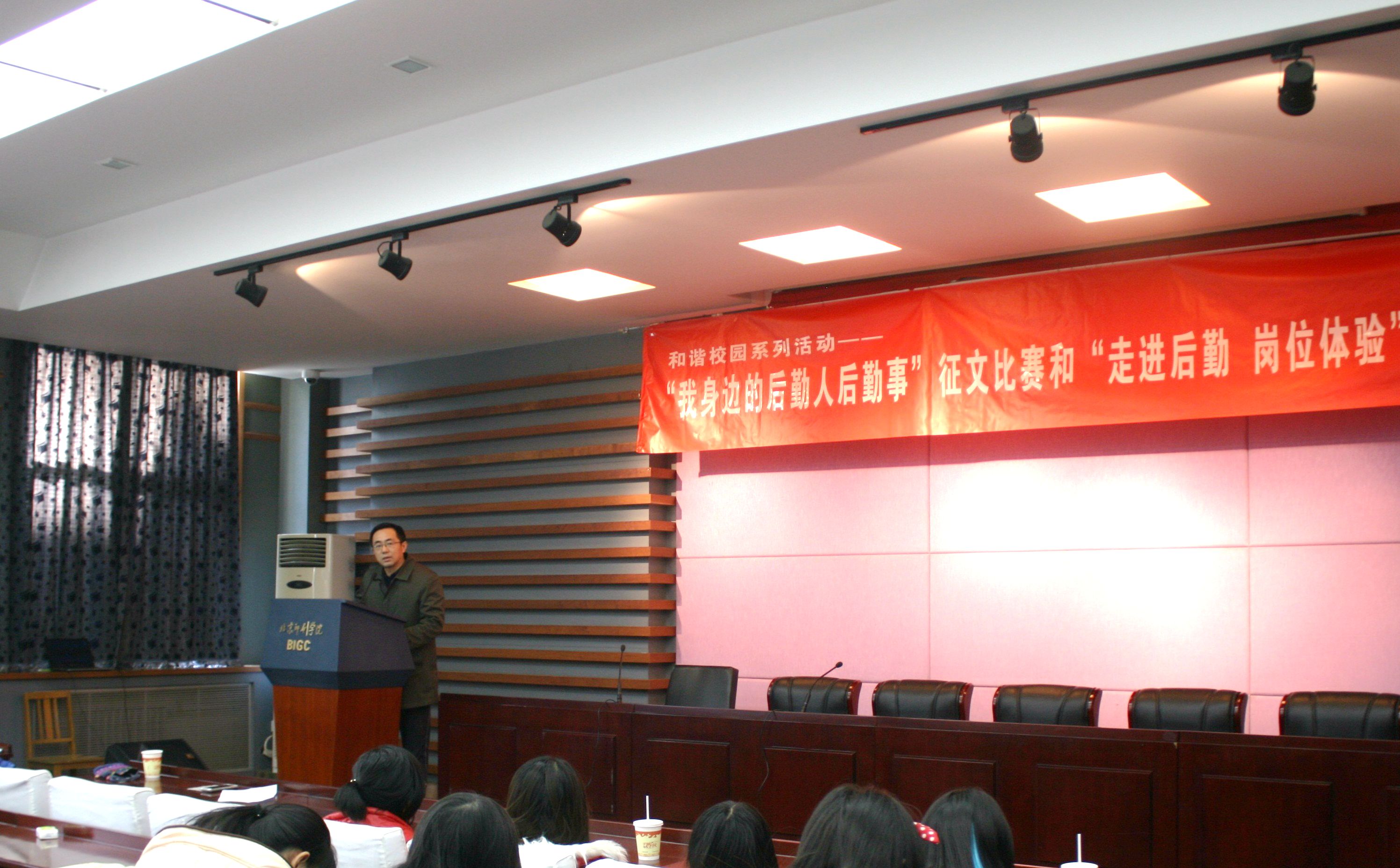 1212日,由北京印刷学院后勤处、共青团北京印刷学院委员会联合主办,北京印刷学院学生会承办的“我身边的后勤人后勤事”征文活动伴随着颁奖仪式的结束而圆满落幕。宣传部副部长杨蕻到会进行征文讲评,后勤处中心主任以上领导、校学生会成员和全体获奖选手50余人到场。颁奖仪式由后勤处党总支书记高山主持。
