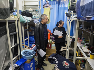 重点检查宿舍安全用电(违规电器、私拉电线等)、消防安全(楼内吸烟、易燃物品堆积等)、室内卫生环境及消防通道占用等情况,尤其对2025年秋季学期开学以来在环境卫生、用电、消防安全等存在问题的宿舍逐一检查。