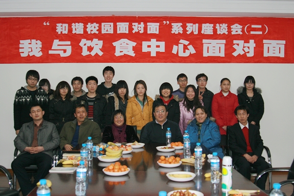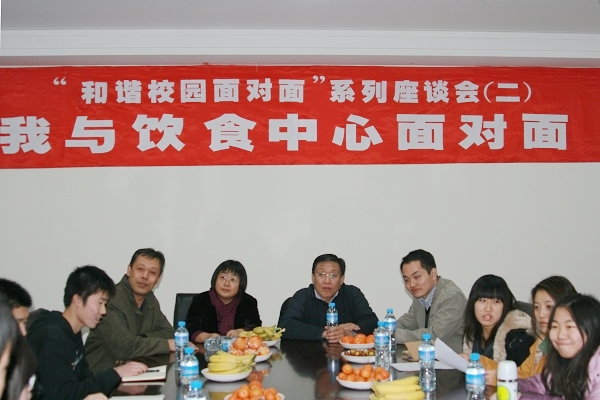 继12月2日学校召开了“和谐校园面对面”之第一期“我与物业面对面””座谈会之后,12月9日下午,学校在西校区综合会议室举办“和谐校园面对面”系列座谈会第二期“我与饮食中心面对面”。学生处、团委、后勤基建处等部门领导,饮食服务中心、三个校区食堂承包经营负责人和学生伙食委会负责人参加了此次座谈。座谈会上听取了师生代表的意见和建议,查找了目前学校饮食服务工作中存在的问题,针对目前为全校师生做好饮食保障工作的具体措施与改进方法进行了沟通。