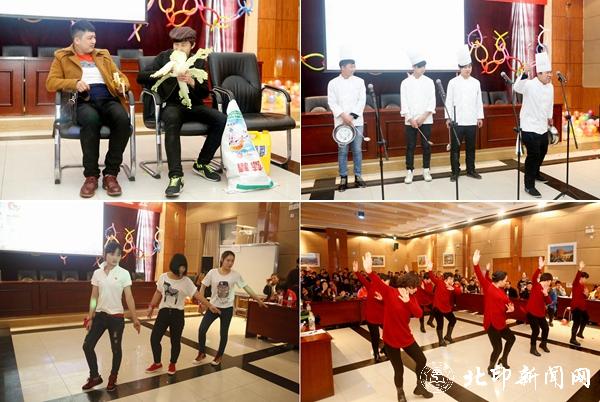 新年联谊会节目形式多样,精彩纷呈。有歌曲、舞蹈、诗朗诵、三句半、乐器演奏以及哑剧等。学生助管马媛的歌曲《甜甜的》,抒发了学生对后勤人辛勤工作的感激之情;热情奔放的舞蹈《青春修炼手册》舞出了喜悦,烘托了欢乐祥和的气氛;原创配乐诗朗诵《梅兰竹菊》,以朴实的语言表达了后勤人"勇于担当、甘于幕后、后而坚守、勤且追求"的情怀;独具创新的哑剧更是以滑稽的表演,将晚会推向高潮;夫妻携手献上的《花桥流水》唱出了许多员工的心声……真真切切地让大家感受到后勤是一个温暖和谐、凝聚力强的大家庭。