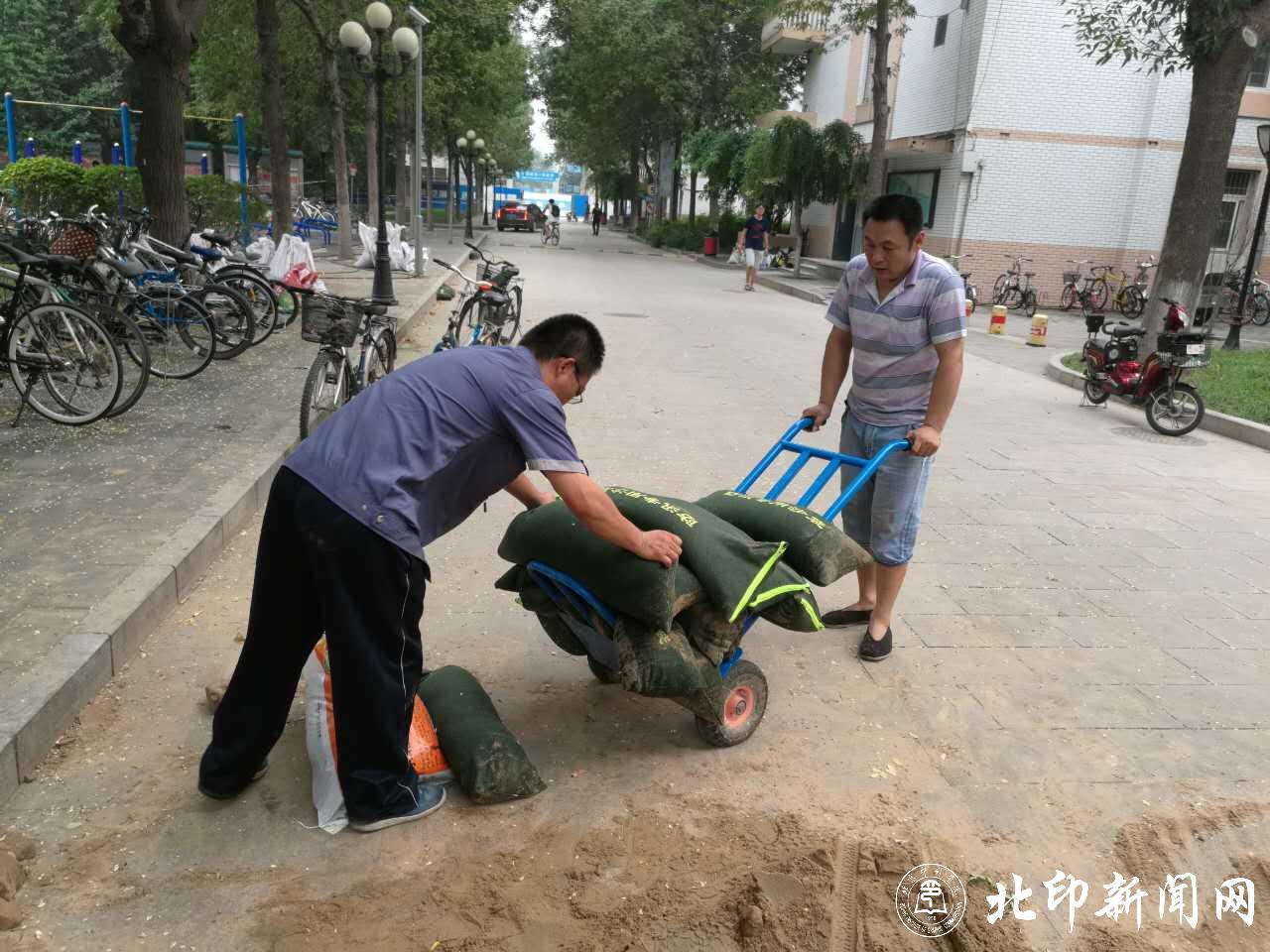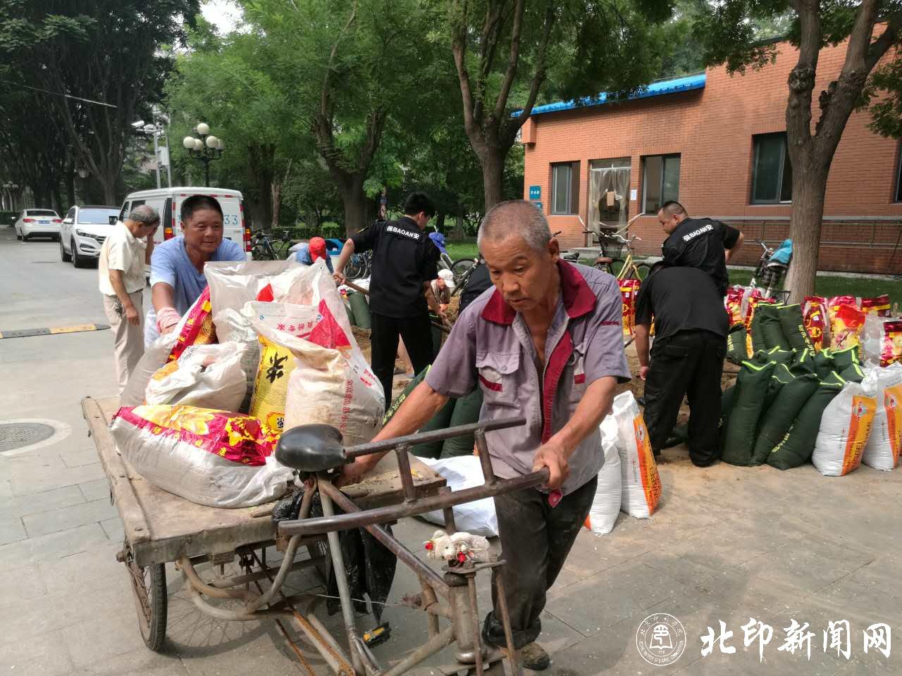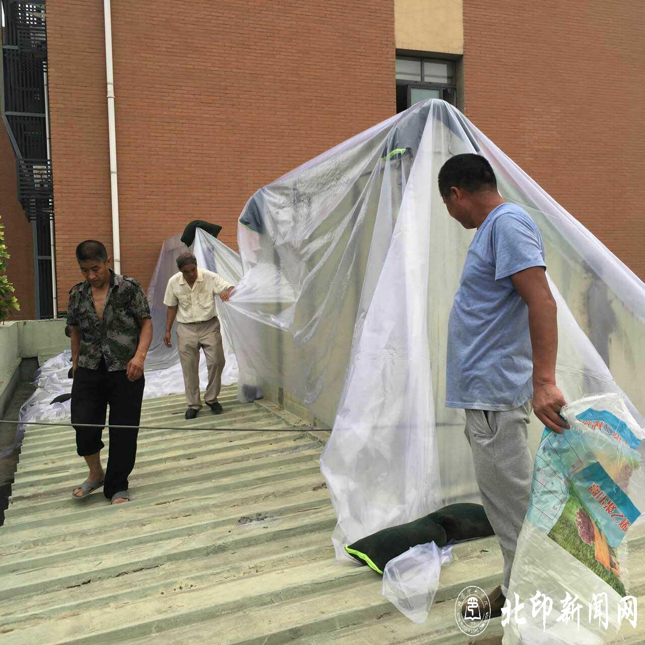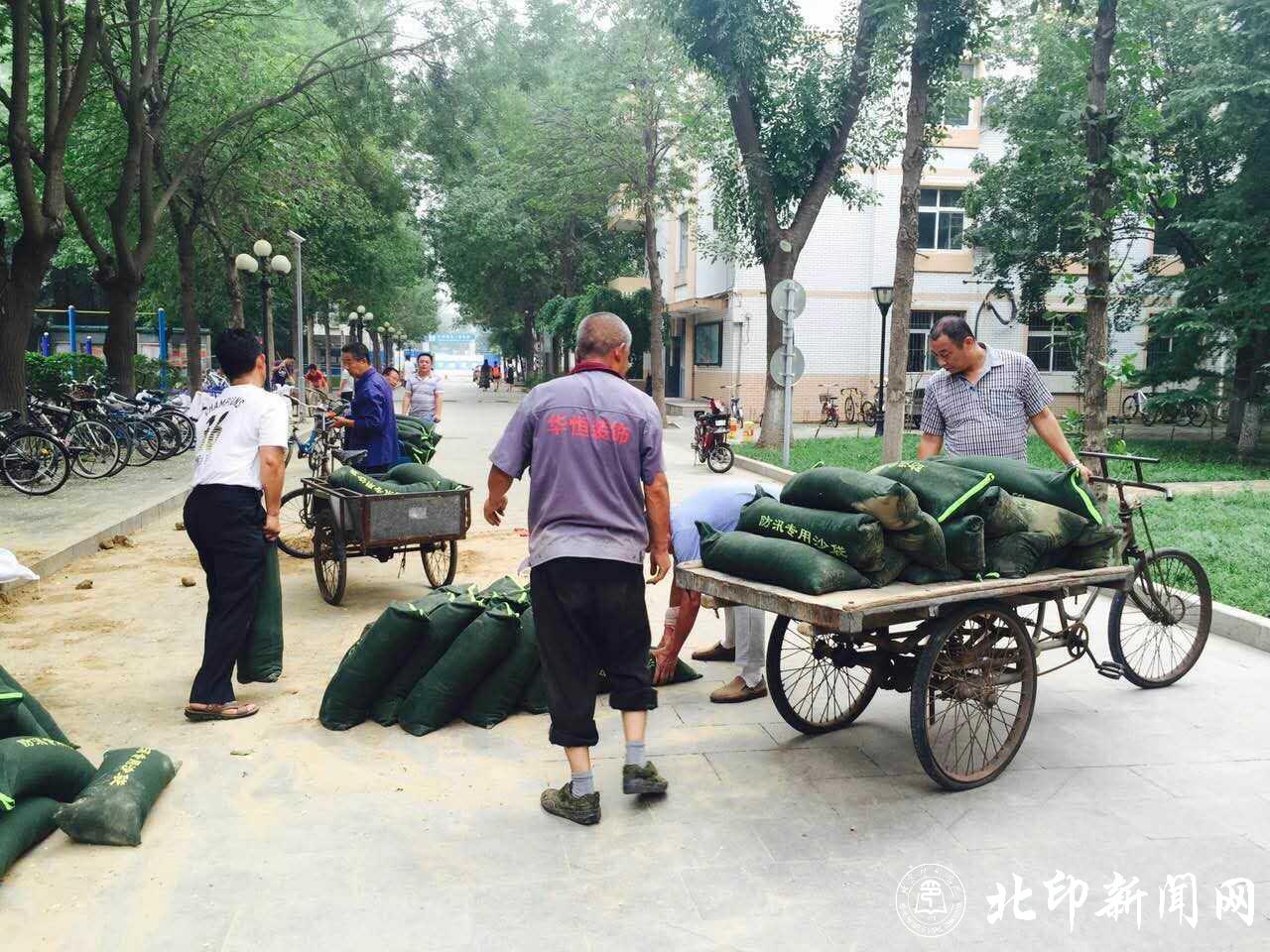 今年,受超强厄尔尼诺现象的影响,我国气候十分异常,全国大部分地区遭遇暴雨袭击,汛期仍在继续。根据北京市防汛办提示,7月24日夜间至25日白天,我市将有大到暴雨。为保证学校安全,今天下午1:30开始,学校后勤、保卫工作人员组成的抢险工作小组积极进行准备,在天气非常炎热的条件下,装沙袋、堵漏洞,铺雨布、防漏水,修水道、清淤泥,做好暴雨来临前的各项准备工作;各基层单位高度重视、加强领导,摸清情况、排查隐患,加强值班、强化教育,大力宣传、保证安全,严明纪律、落实责任,确保汛期平稳安全渡过。在此,让我们向战斗在防汛一线的后勤、保卫和各基层单位工作人员致以崇高的敬意!