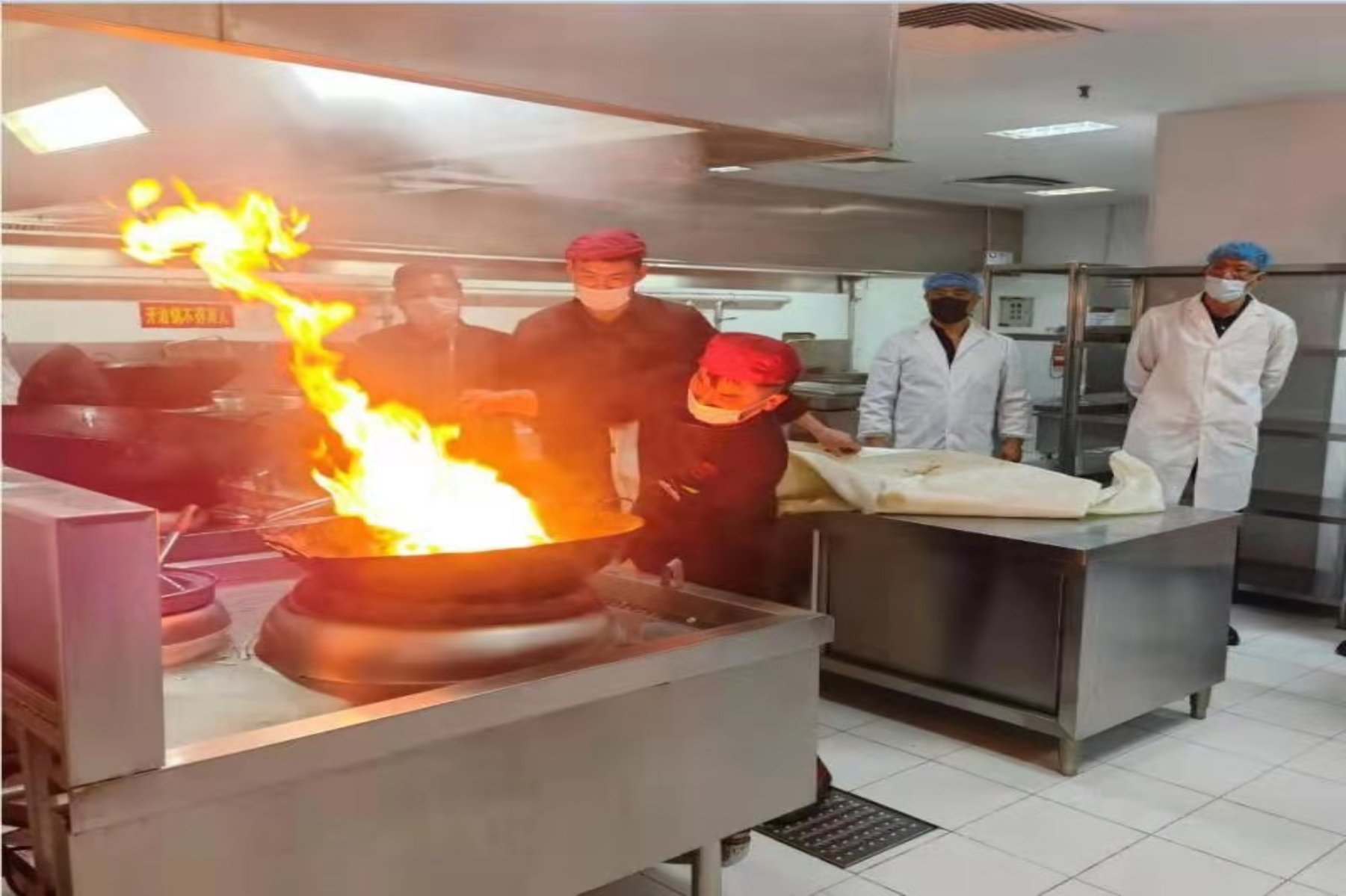 通过模拟真实的火灾场景,每位食堂员工亲身体验了灭火的过程,掌握了在实际操作中遇到火灾的正确处理方法。最后在熊熊火光和烟雾弥漫中,结束了这次紧张、严肃、生动的消防演练。