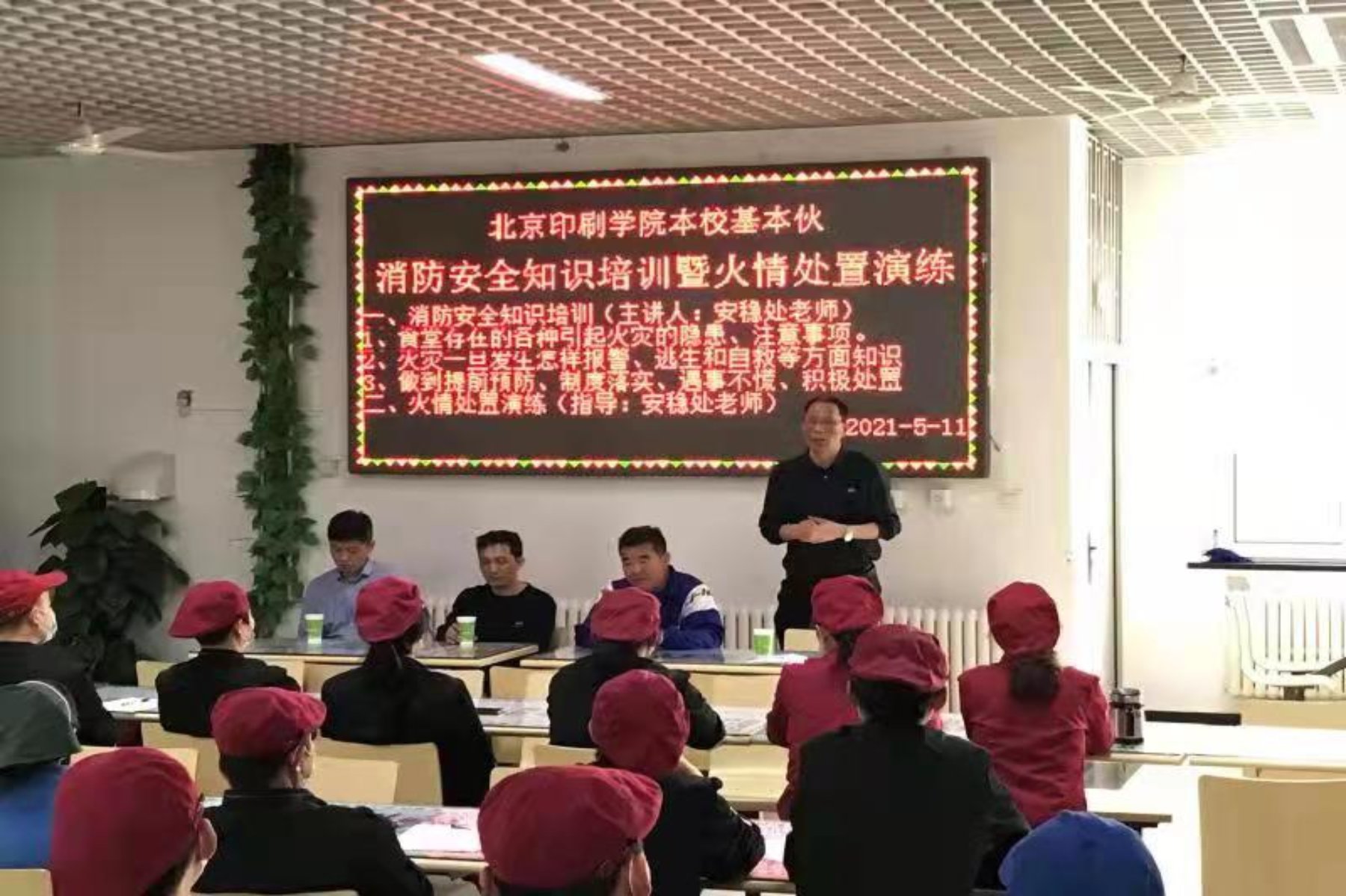 为增强后勤处饮食服务中心食堂员工的消防安全意识,提高食堂消防安全防控水平,提升火灾事故应急处理能力,建设平安校园。2021年5月11日下午,在校本部食堂,后勤处联合安稳处对食堂员工开展了消防安全知识普及的专题教育活动。后勤处、安稳处、饮食服务中心有关负责同志,以及食堂员工50多人参加活动。